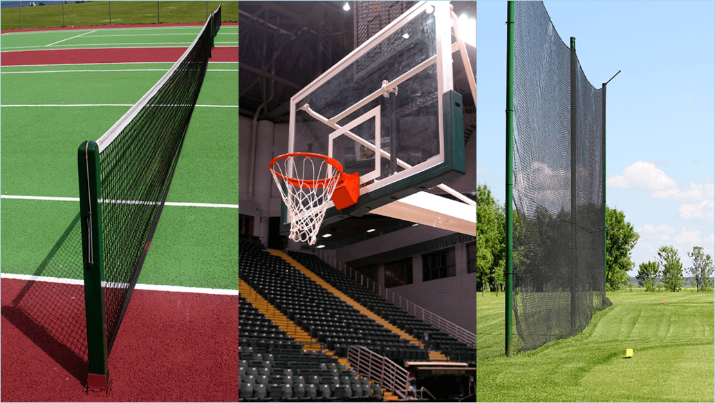 communities, and indoor sports facilities. The nets help maintain boundary